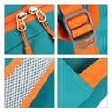 Wanderer Backpack fits spontaneous getaways where light packing and easy storage matter. Made from resilient nylon, this hiking backpack folds smoothly into a compact pouch, perfect for luggage, glove compartments or travel totes. Once unfolded, the main pocket provides generous room for snacks, clothing layers or travel necessities. The front zipper pocket keeps smaller items organised for quick access during busy days outdoors. Two side pockets accommodate water bottles, maps or compact umbrellas. Elastic adjustable straps help secure walking sticks or rolled jackets when trails become warmer. Water resistant material handles light rain with ease. Colour choices include black, dark blue with orange, orange with teal, teal with orange, light grey with black, and olive green with black.