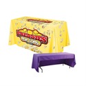 6ft 3 Sided Throw Tablecloth gives clean coverage while leaving storage access clear. Crafted from standard 300D poly with wrinkle resistant performance, this table throw presents a polished front and sides while maintaining an open back for easy access beneath. The three sided format allows boxes, supplies, or personal items to stay neatly hidden without restricting movement. Stain resistant fabric handles busy event days with confidence, helping graphics remain sharp and presentable throughout use. Generous proportions suit six foot tables comfortably, creating a balanced drop that looks tidy from every visible angle. This piece suits exhibitions, pop up counters, and promotional spaces where smart presentation and practical access matter equally.