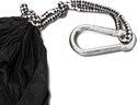 The Frontier Nylon Hammock offers a perfect blend of comfort, strength, and portability for outdoor relaxation. Crafted from durable 210T nylon, it comfortably accommodates two people and is designed for easy setup with included straps and carabiners. The assembly straps feature five adjustable hanging positions and are engineered to prevent damage to trees, making them an eco-friendly choice. When not in use, the hammock packs neatly into its integrated pouch for effortless storage and transport. Ideal for camping, hiking, or enjoying a quiet moment in the backyard, it comes presented with a Frontier-branded hangtag.
